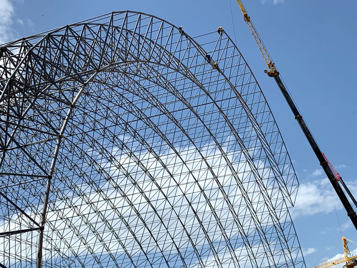(2)网架加工前应对现场尺寸进行复测,确认无误后方可进行加工、安装;网架制作、运输、安装应遵守《空间网格结构技术规程》JGJ7-2010、《钢网架额尔古纳螺栓球节点》JG/T 10-2009、《钢网架额尔古纳螺栓球节点用高强度螺栓》 GB/T 16939-2016、《额尔古纳钢结构额尔古纳工程额尔古纳施工规范》 GB50755-2012、《额尔古纳钢结构额尔古纳工程额尔古纳施工质量验收标准》 GB50205-2020。